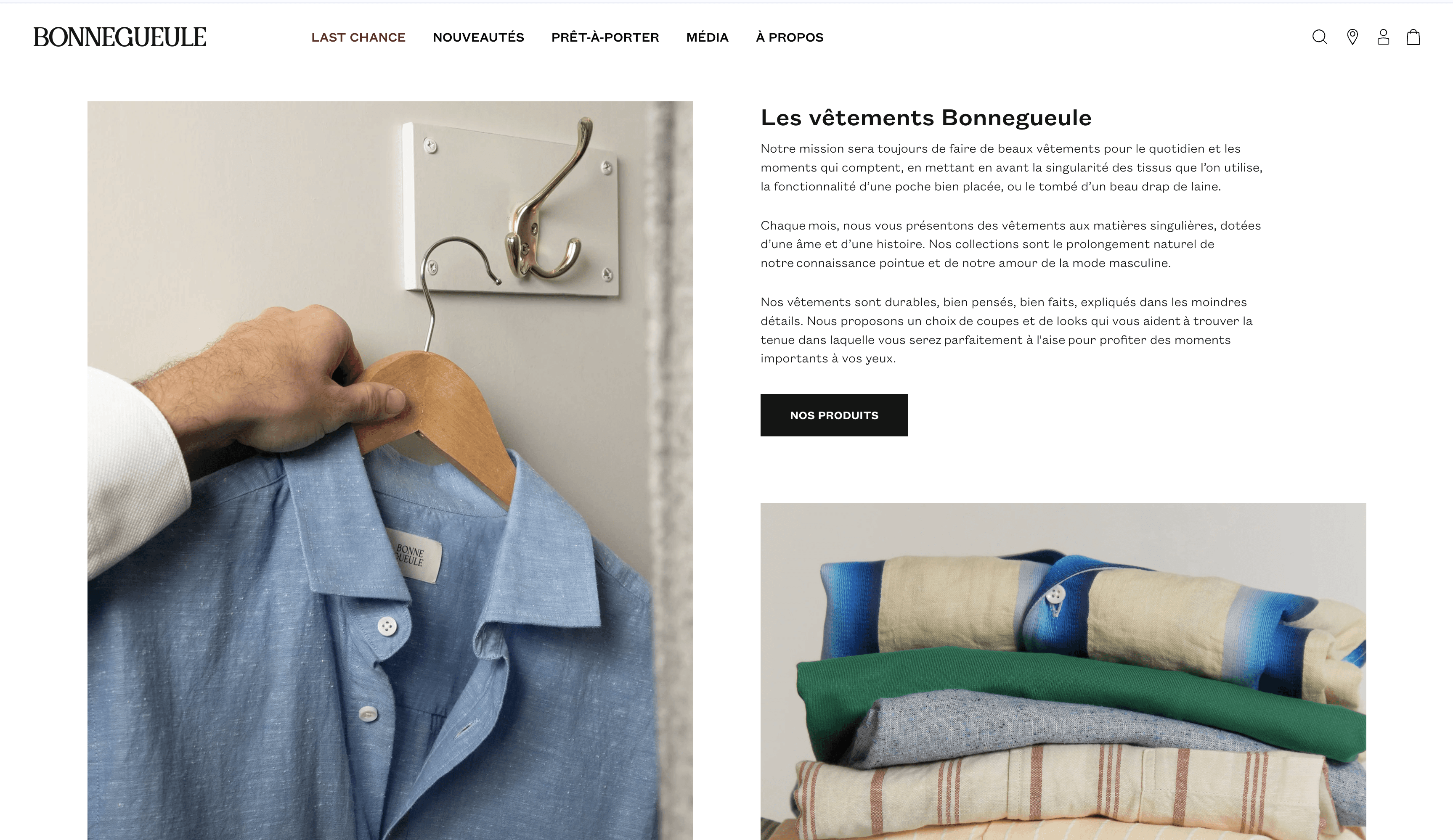 Nous avons travaillé sur l'optimisation du parcours de conversion : simplifier la navigation entre contenu éditorial et catalogue produit, enrichir les fiches produits avec les détails matières et fabrication qui font la force de la marque, et raccourcir le tunnel d'achat.